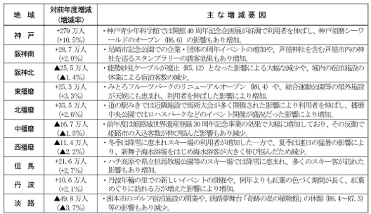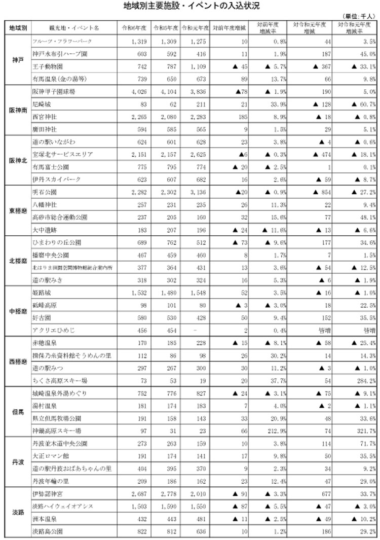 出典:兵庫県調べ ※地域毎の主要観光施設(約66地点)を調査 |
