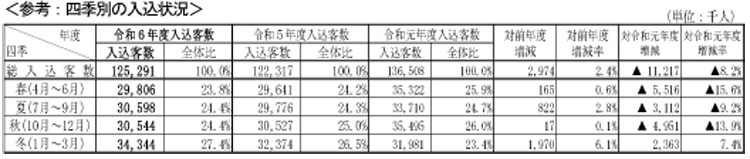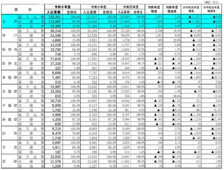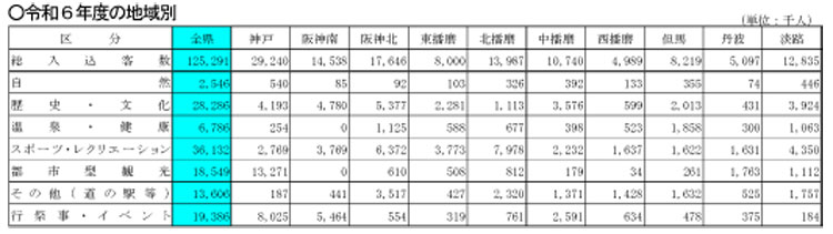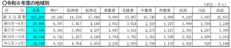 令和6年度の観光入込客数は、前年度を297万人上回る1億2,529万人(対前年度比102.4%)となった。 令和5年5月の新型コロナ感染症法上の5類移行に加え、「兵庫デスティネーションキャンペーンアフ