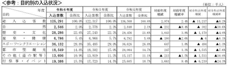 令和6年度県内観光消費額(名目)は、1兆5,059億円(前年度比96.1%)、観光産業の付加価値額で ある観光産業県内総生産(名目)は8,148億円(同94.9%)である。