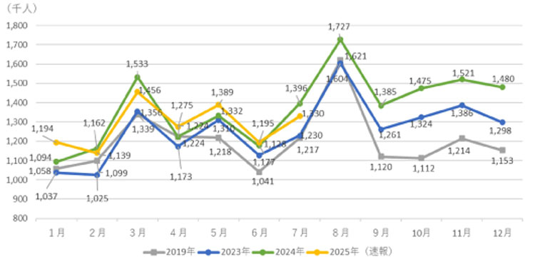 2025(R7)年は7月時点で全期間において2019(R1)年、2023(R5)を上回る水準で推移しているが、2024(R6)